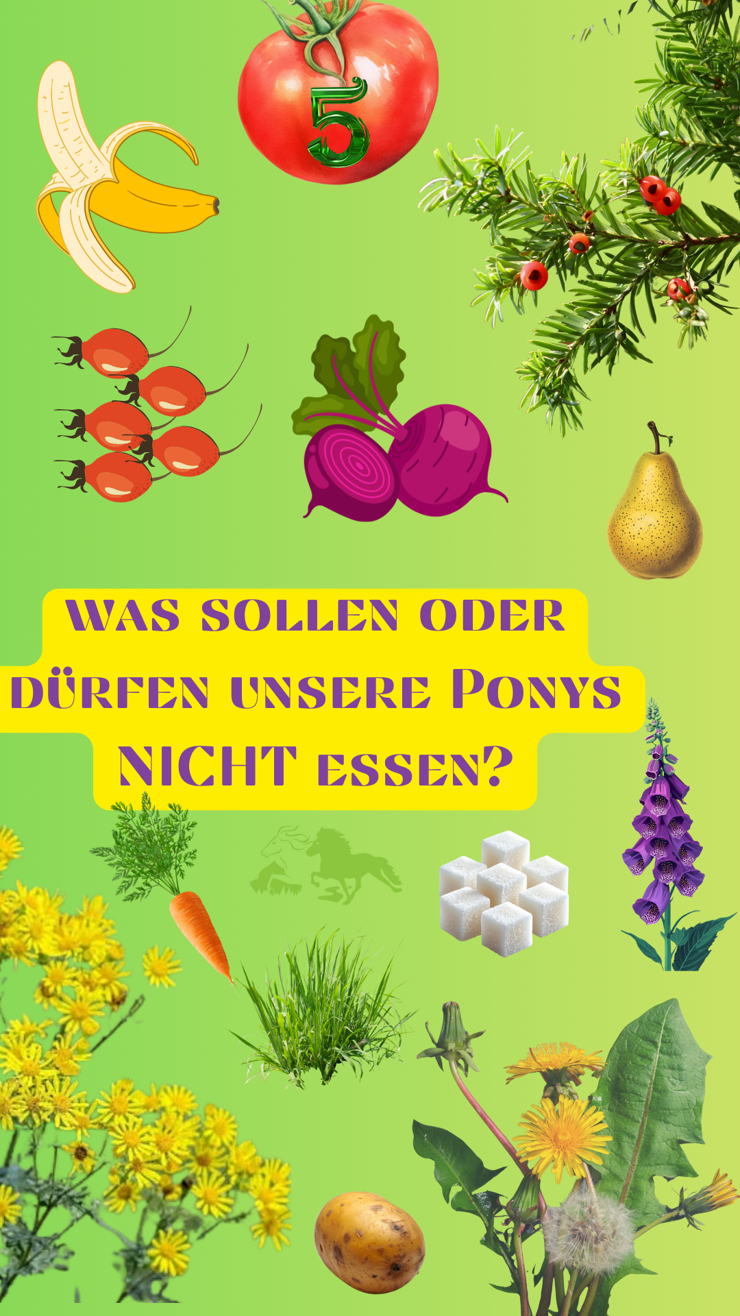 DÜRFEN essen: Banane, Hagebutte, rote Beete, Möhren, Gras, Löwenzahn, Birne (Und heute haben wir gelernt, dass Birnen auch nicht so richtig gut sind als Leckerli, da sie sehr viel Zucker haben und die Kerne auch ungesund sind.)