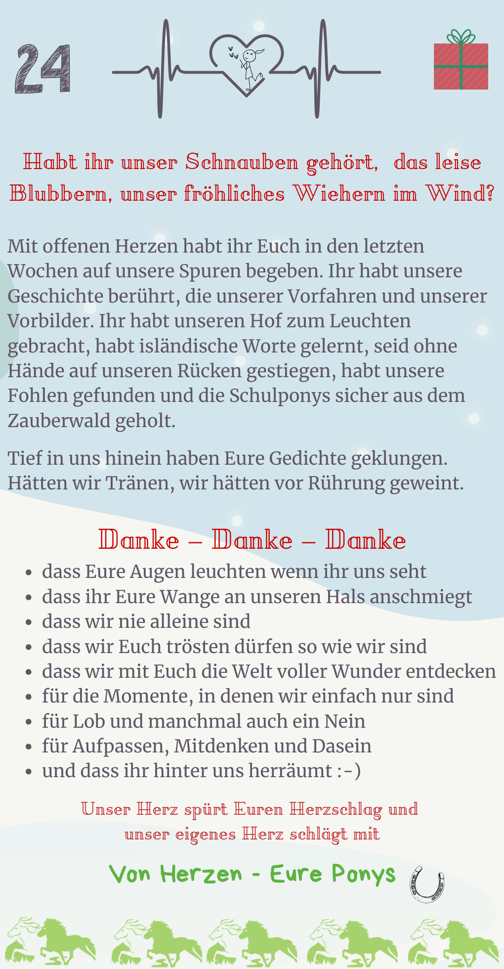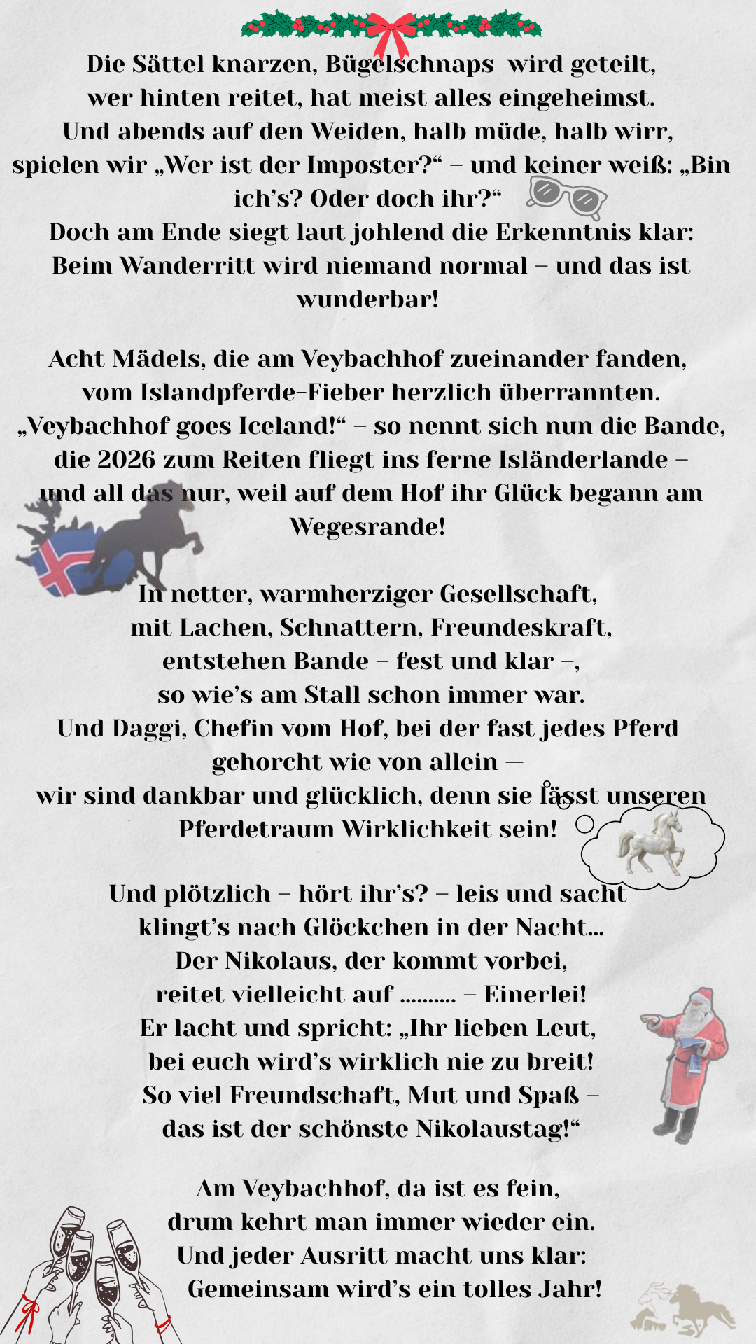 Der Veybachhof-Recherbusch-Adventskalender für unsere Pensioner, Reitschüler und Freunde