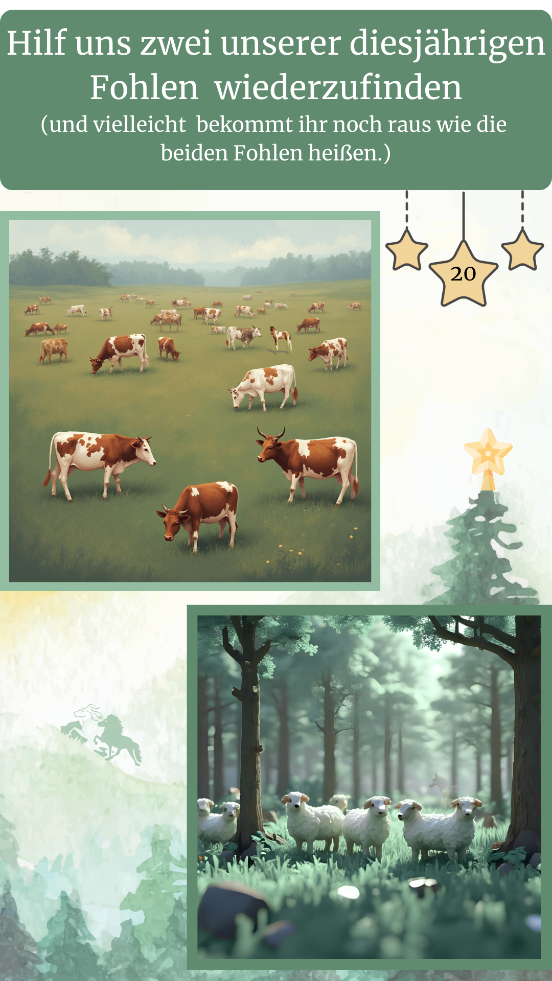 Eure Lösungen könnt Ihr entweder per E-Mail an Adventskalender@veybachhof.de oder über WhatsApp an "Veybachhof Adventskalender 2025" (0151 - 29 817 822) schicken.