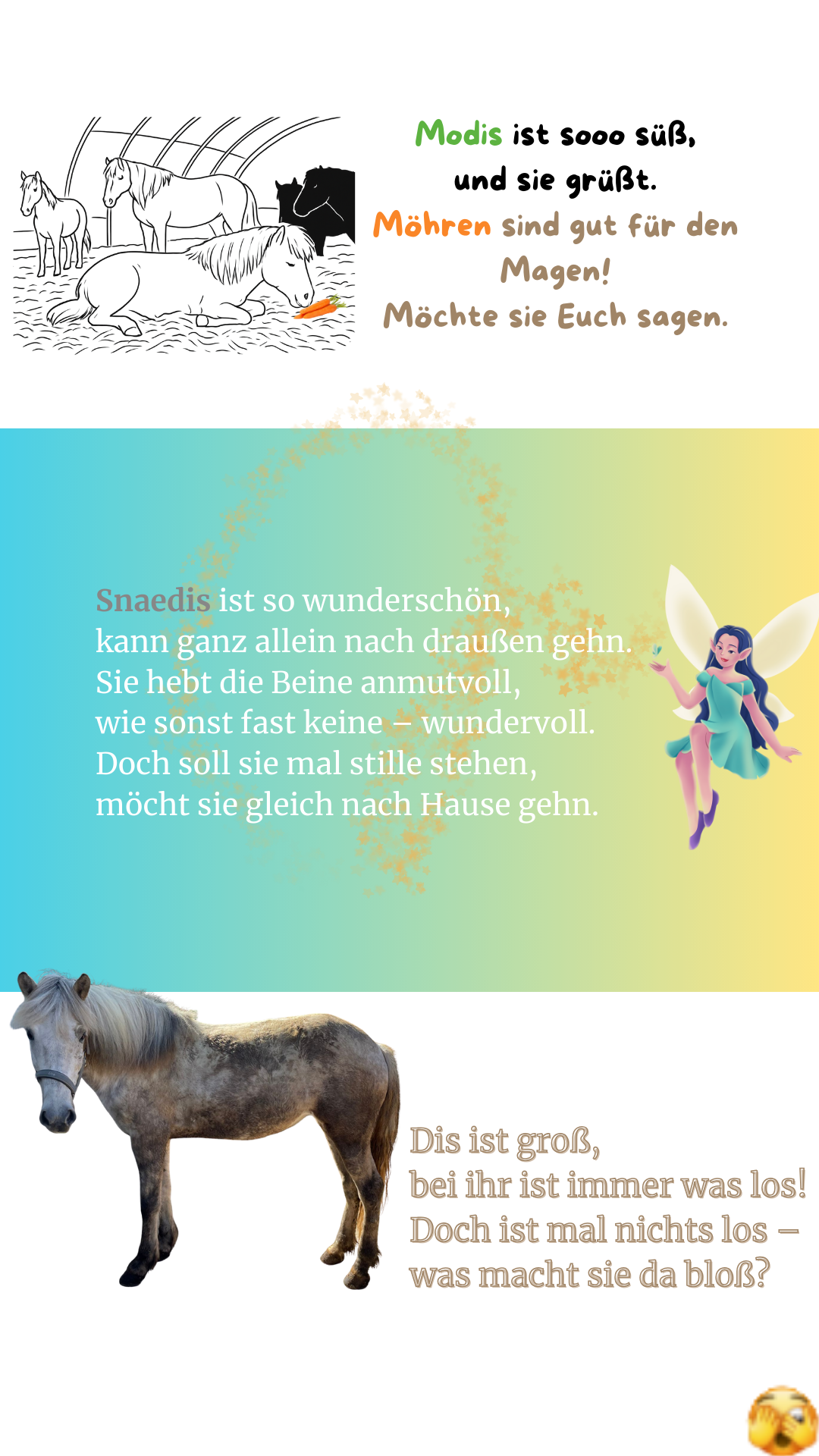 Wenn ihr mögt schickt uns zusätzlich zu dem kleinen Gedicht ein Foto von Eurem Lieblingspony. Wir werden daraus eine kleine Illustration machen. Ihr könnt natürlich selbst eine Illustration machen und uns schicken. Aber wie geschrieben: das Gedicht reicht - das Pony wird sich darüber riesig freuen :-).